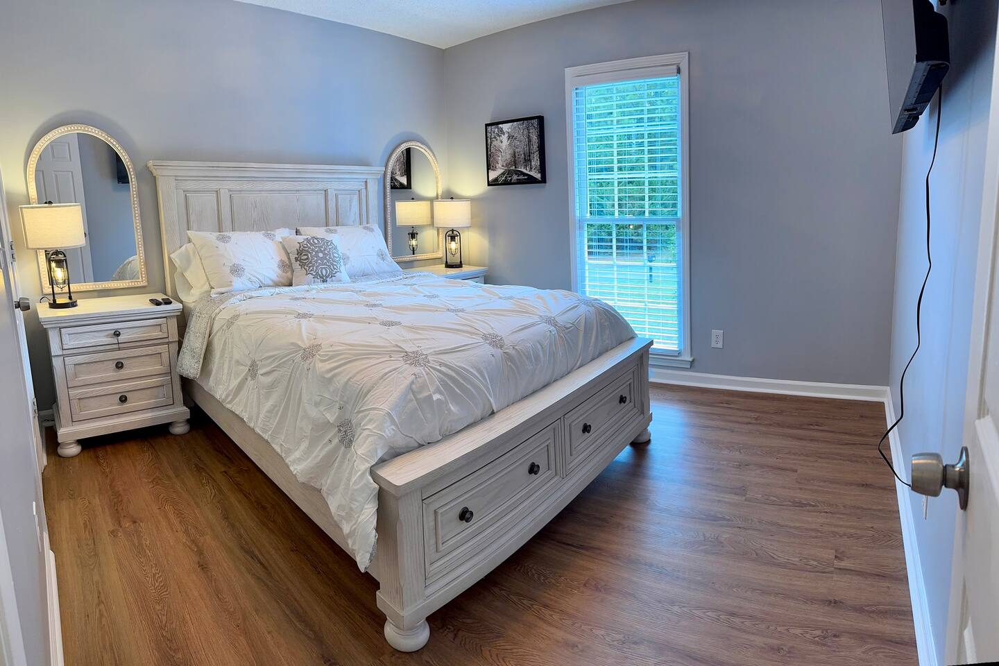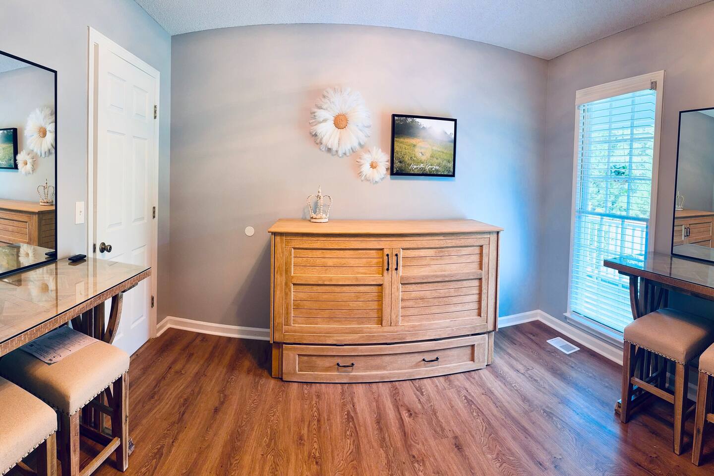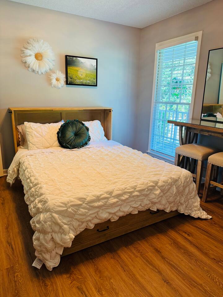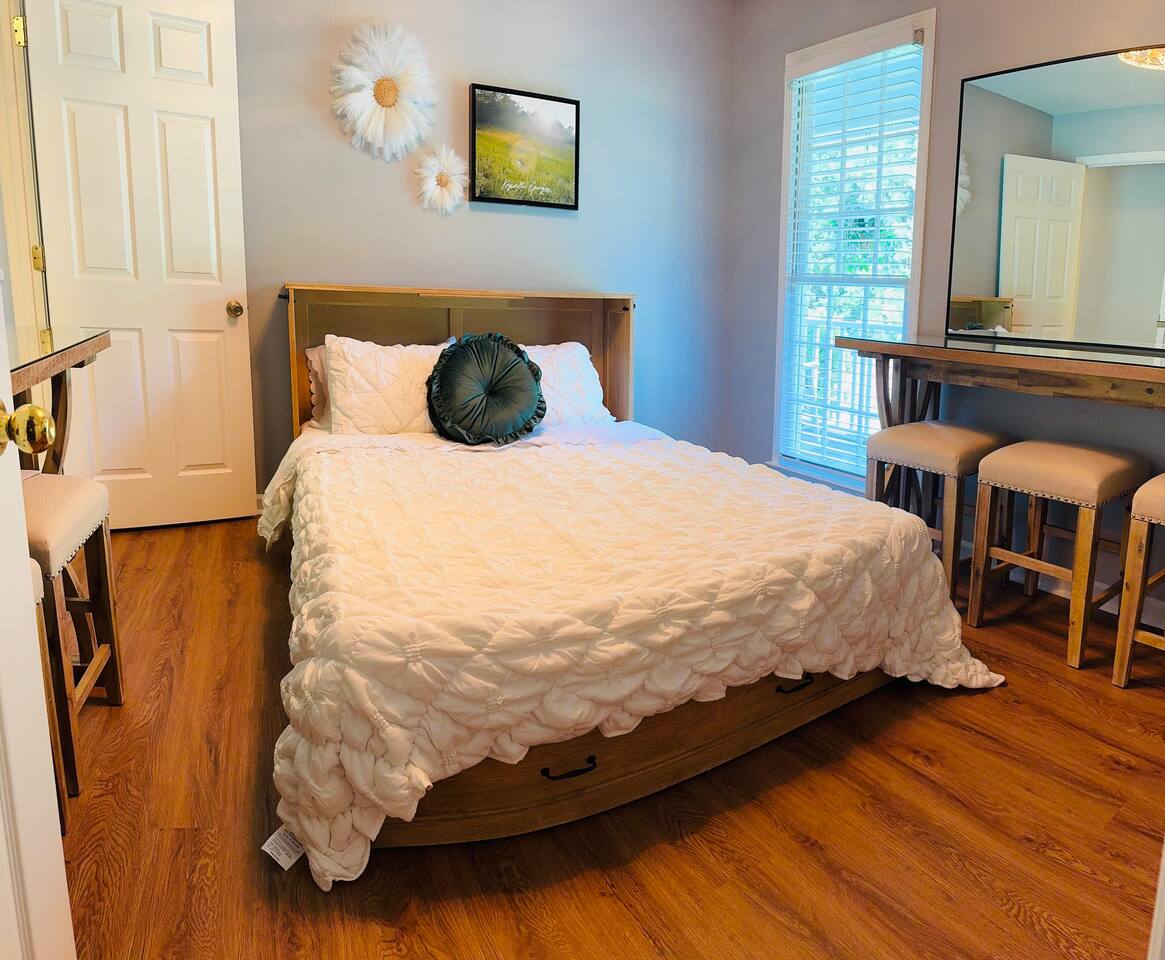 🏡 Welcome to The Redfield Retreat – Sleeps 8-10 Comfortably Bring the whole family, your sports team, or a large group of friends—The Redfield Retreat in Acworth, GA is designed for both comfort and fun. With 4 spacious bedrooms, 2 bathrooms, and multiple living areas, our home sleeps 8-10 guests comfortably perfect for reunions, wedding weekends, and team trips. 🌟 What You’ll Love: Space for Everyone – 4 bedrooms plus an upstairs and downstairs living room mean plenty of room to spread out. Game Room Fun – enjoy time together with games, lounging, and entertainment in the dedicated game room area. Fenced Backyard – ideal for cookouts, kids, or simply enjoying the fresh Georgia air. Family-Friendly Comfort – cozy living spaces, a fully stocked kitchen, and all the essentials of home. Entertainment Nearby – minutes from 🚤 Lake Allatoona, 🌲 Red Top Mountain State Park, ⚾ LakePoint Sports Complex, and 🍻 Downtown Acworth dining & breweries. 🛋 Comfort & Convenience: ✔️ Sleeps 8-10 with flexible beds ✔️ 2 living rooms + game room for gatherings ✔️ High-speed WiFi & smart TVs ✔️ Washer & dryer for long stays ✔️ Self check-in & easy access parking Whether you’re here for a sports tournament, lake adventure, or special celebration, The Redfield Retreat offers the space, comfort, and entertainment your group needs. 📍 Book your stay today and experience why groups love staying together under one roof! 🛏 Sleeping Arrangements at The Redfield Retreat Bedroom 1 (Master Suite): 1 King Bed Smart TV + Closet + Ceiling Fan stand up mirror with light Bedroom 2: 1 Queen Bed stand up mirrors with light + Closet + TV Bedroom 3: 1 Queen Murphy Bed (with wall mirrors) Great for couples or extra guests Bedroom 4 (Bunk Room): Bunk beds for flexible group sleeping (perfect for kids, teens, or sports teams) Additional: Living room and Game room area downstairs.