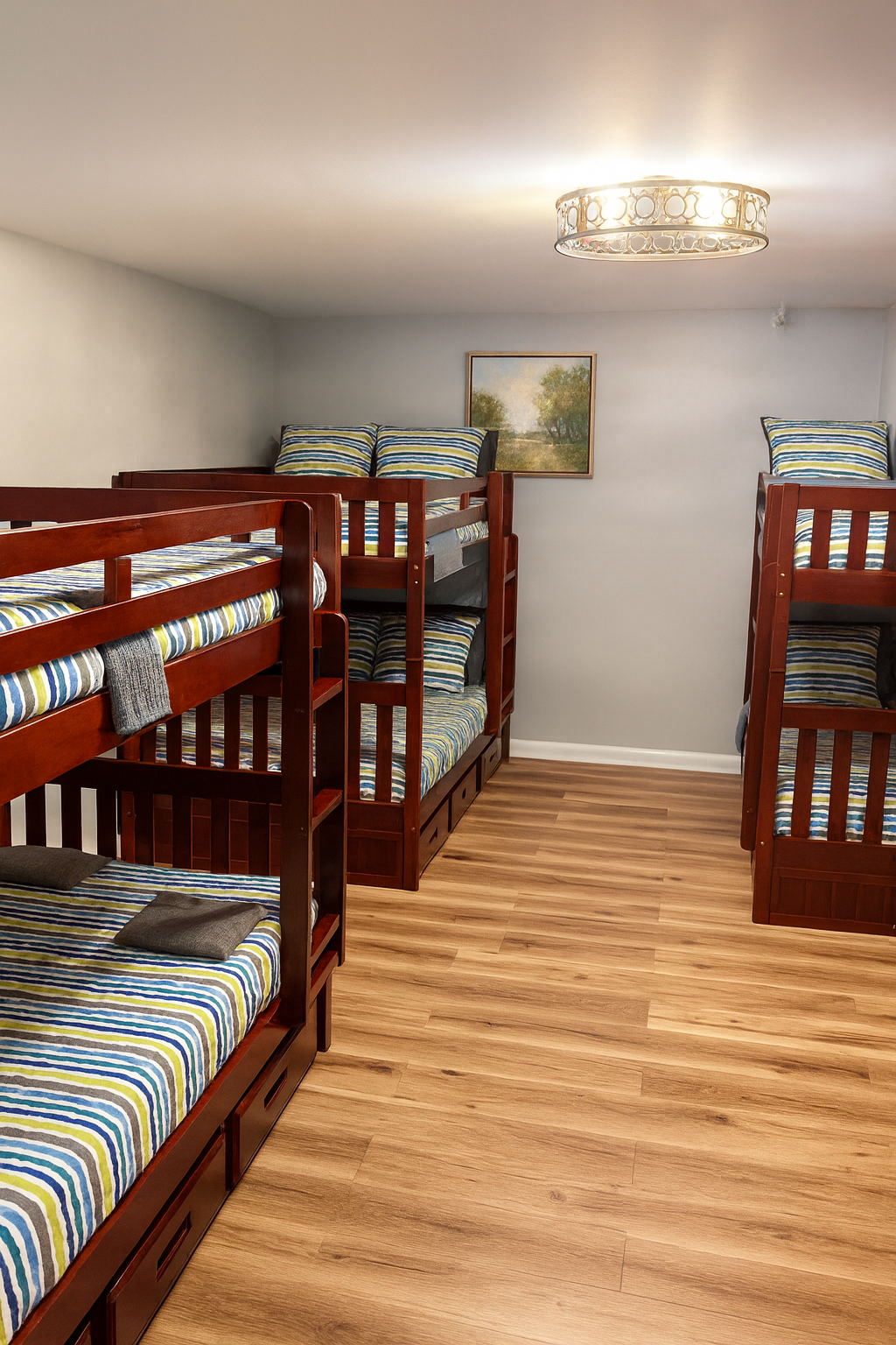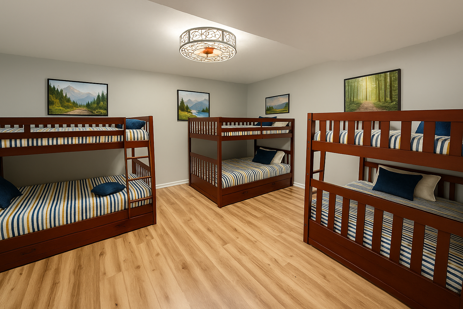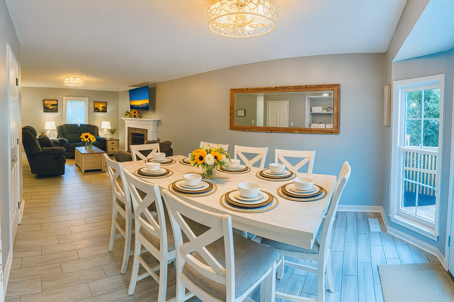 🏡 Welcome to The Redfield Retreat – Sleeps 8-10 Comfortably Bring the whole family, your sports team, or a large group of friends—The Redfield Retreat in Acworth, GA is designed for both comfort and fun. With 4 spacious bedrooms, 2 bathrooms, and multiple living areas, our home sleeps 8-10 guests comfortably perfect for reunions, wedding weekends, and team trips. 🌟 What You’ll Love: Space for Everyone – 4 bedrooms plus an upstairs and downstairs living room mean plenty of room to spread out. Game Room Fun – enjoy time together with games, lounging, and entertainment in the dedicated game room area. Fenced Backyard – ideal for cookouts, kids, or simply enjoying the fresh Georgia air. Family-Friendly Comfort – cozy living spaces, a fully stocked kitchen, and all the essentials of home. Entertainment Nearby – minutes from 🚤 Lake Allatoona, 🌲 Red Top Mountain State Park, ⚾ LakePoint Sports Complex, and 🍻 Downtown Acworth dining & breweries. 🛋 Comfort & Convenience: ✔️ Sleeps 8-10 with flexible beds ✔️ 2 living rooms + game room for gatherings ✔️ High-speed WiFi & smart TVs ✔️ Washer & dryer for long stays ✔️ Self check-in & easy access parking Whether you’re here for a sports tournament, lake adventure, or special celebration, The Redfield Retreat offers the space, comfort, and entertainment your group needs. 📍 Book your stay today and experience why groups love staying together under one roof! 🛏 Sleeping Arrangements at The Redfield Retreat Bedroom 1 (Master Suite): 1 King Bed Smart TV + Closet + Ceiling Fan stand up mirror with light Bedroom 2: 1 Queen Bed stand up mirrors with light + Closet + TV Bedroom 3: 1 Queen Murphy Bed (with wall mirrors) Great for couples or extra guests Bedroom 4 (Bunk Room): Bunk beds for flexible group sleeping (perfect for kids, teens, or sports teams) Additional: Living room and Game room area downstairs.